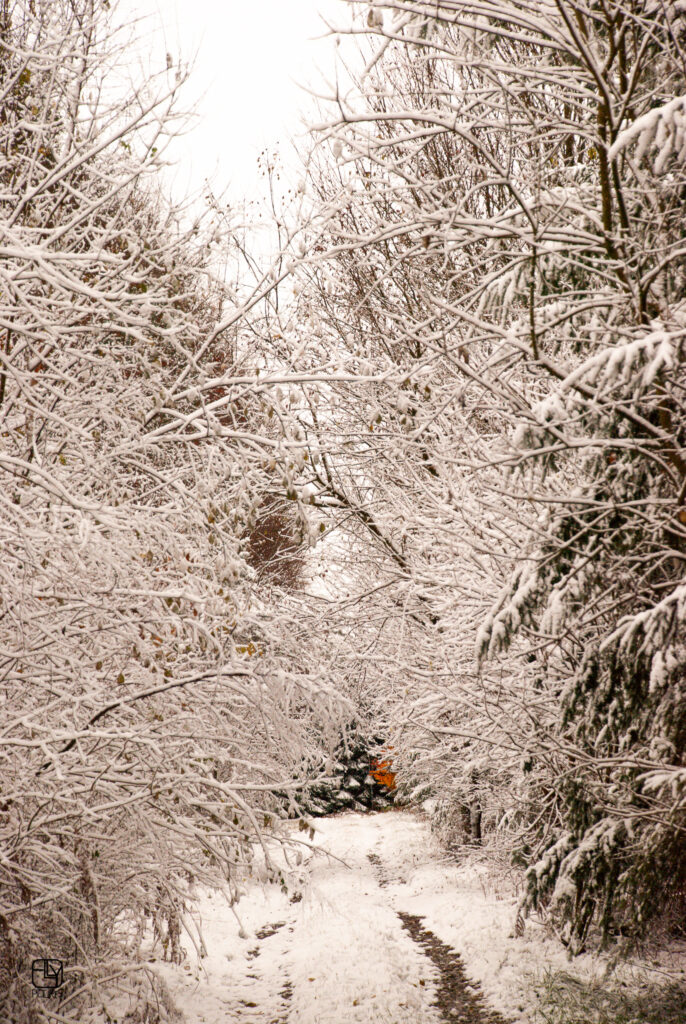 Les forêts environnantes semblent endormies sous la neige. Les troncs des arbres, recouverts de givre, se dressent fièrement, formant un chemin silencieux pour les rares promeneurs. Les sentiers, presque déserts, sont transformés en pistes blanches où la lumière tamisée de l’hiver joue avec les ombres. Cette atmosphère feutrée et tranquille se reflète parfaitement dans chaque cliché, apportant une sensation de calme profond.